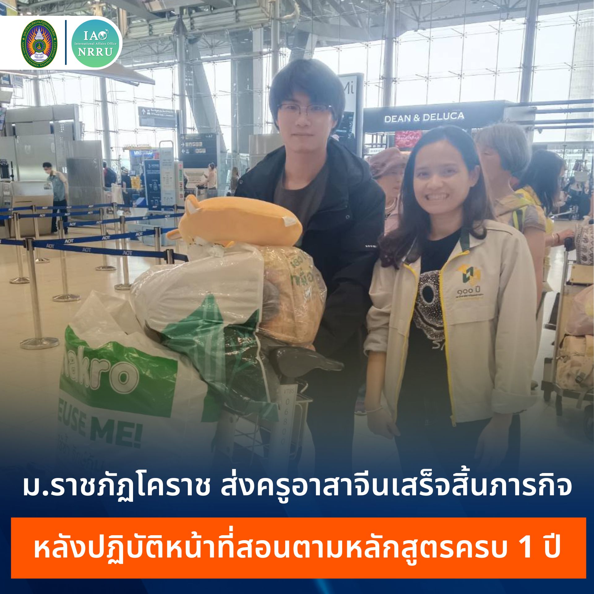 เมื่อวันที่ 23 มีนาคม 2569 มหาวิทยาลัยราชภัฏนครราชสีมา โดยกองวิเทศสัมพันธ์ สำนักงานอธิการบดี ได้เดินทางเพื่อไปส่ง Mr. Wenshi Shang ครูอาสาสมัครชาวจีน จากโครงการครูอาสาสมัครชาวจีน ประจำปีการศึกษา 2568 โดยสำนักงานปลัดกระทรวงการอุดมศึกษา วิทยาศาสตร์ วิจัยและนวัตกรรม (สป.อว.) ร่วมกับศูนย์แลกเปลี่ยนและส่งเสริมความร่วมมือด้านภาษาจีนระหว่างประเทศ สำนักงานกรุงเทพ